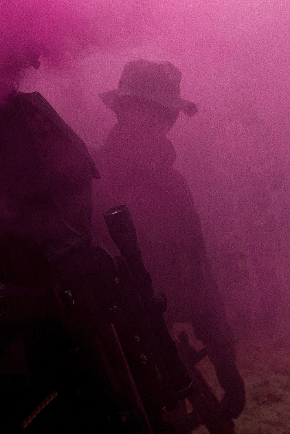 For four years I photographed a male dominated subculture that simulates war – weekends with 50 hours of no sleep and straight warfare with dummy weapons and plastic bullets, up to 1500 participants, tanks, helicopters, explosive suicide belts connected to cellphones, no women, real tactics and artificial deaths to imitate warzones like Iraq or Afghanistan while being in the forests of Hungary, Czech republic, Austria and Poland.